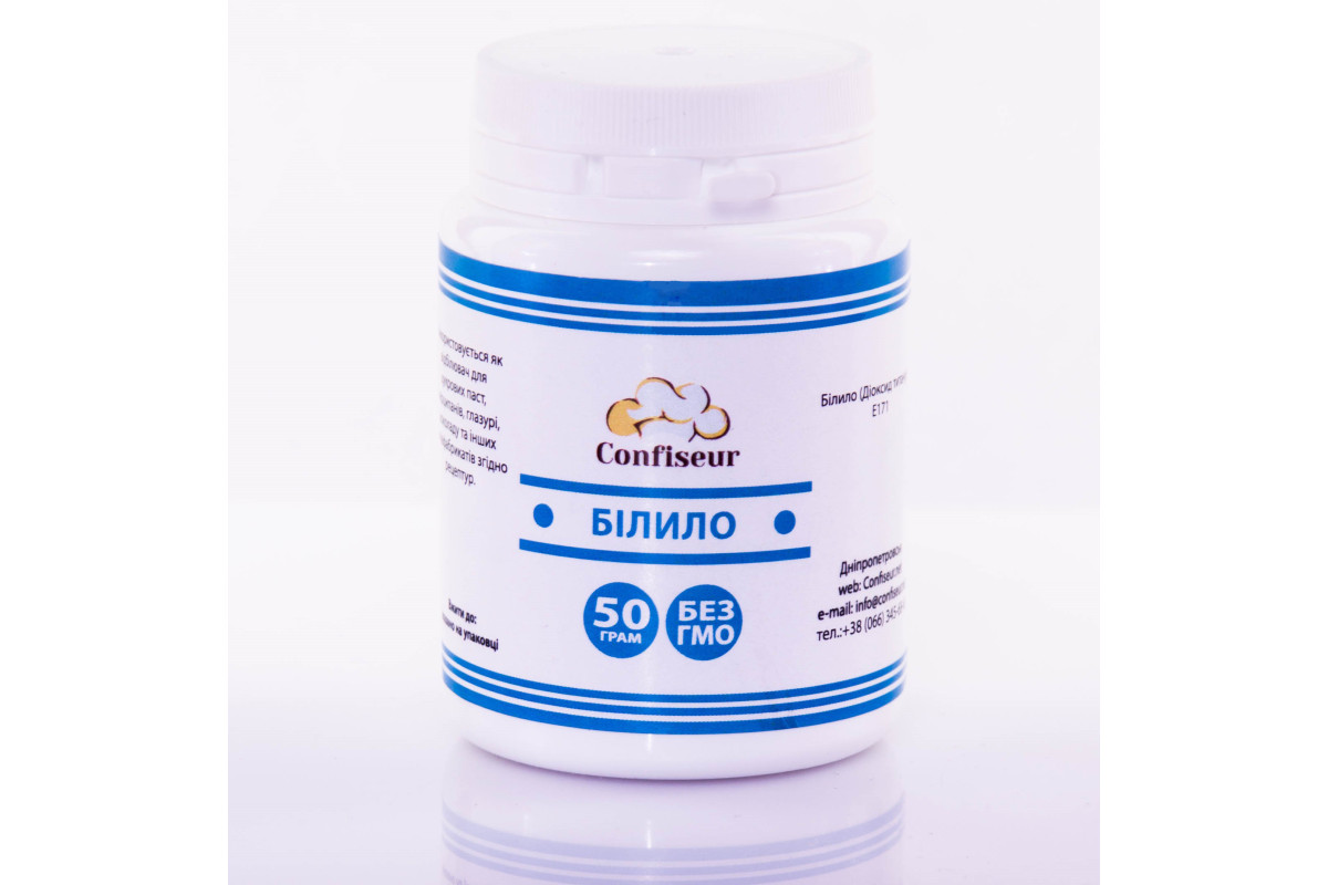 Используется как отбеливатель для сахарной пасты, марципана, глазури, шоколада и других полуфабрикатов согласно рецептур.