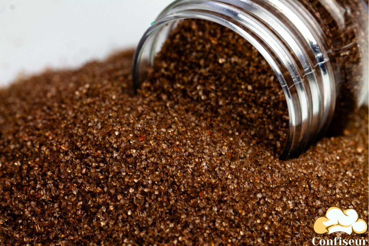 цукор кольоровий, пофарбований коричневим харчовим барвником і покритий спеціальним харчовим блиском, завдяки чому він має гарний блиск, не розтікається на виробі, підходить для декору будь-яких кондитерських виробів та коктейлів. Цукор чітко відкалібрований і має однаковий розмір піщинок