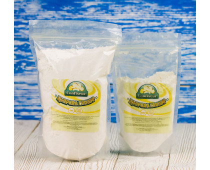 Суха суміш для приготування білкової кондитерської глазурі. Використовується в декоруванні пасок, капкейків, тортів, пончиків і інших кондитерських виробів. Процес приготування готової кондитерської маси, досить простий: необхідно взяти потрібну кількість сухої суміші і прохолодною очищеної води, перемішати і збити на міксері до утворення м'яких піків. У складі цукрової глазурі, тільки харчові інгредієнти, все підібрано в необхідній кількості та співвідношенні, Вам немає необхідності ще щось додавати, збив і готово! Маса виходить соковитою і ніжною. Для кращої фіксації глазурі на виробі, краще наносити готову масу на ще гарячі вироби. Ми рекомендуємо цю суміш для використання, як професіоналам кондитерського справи, так і початківцям кондитерам або домогосподаркам. Готова кондитерська маса може зберігатися ще пару днів в холодильнику накритою вологою тканиною або в щільно закритій тарі. Цукрова кондитерська глазур має приємний ванільний смак і аромат. Термін придатності суміші: 1 рік