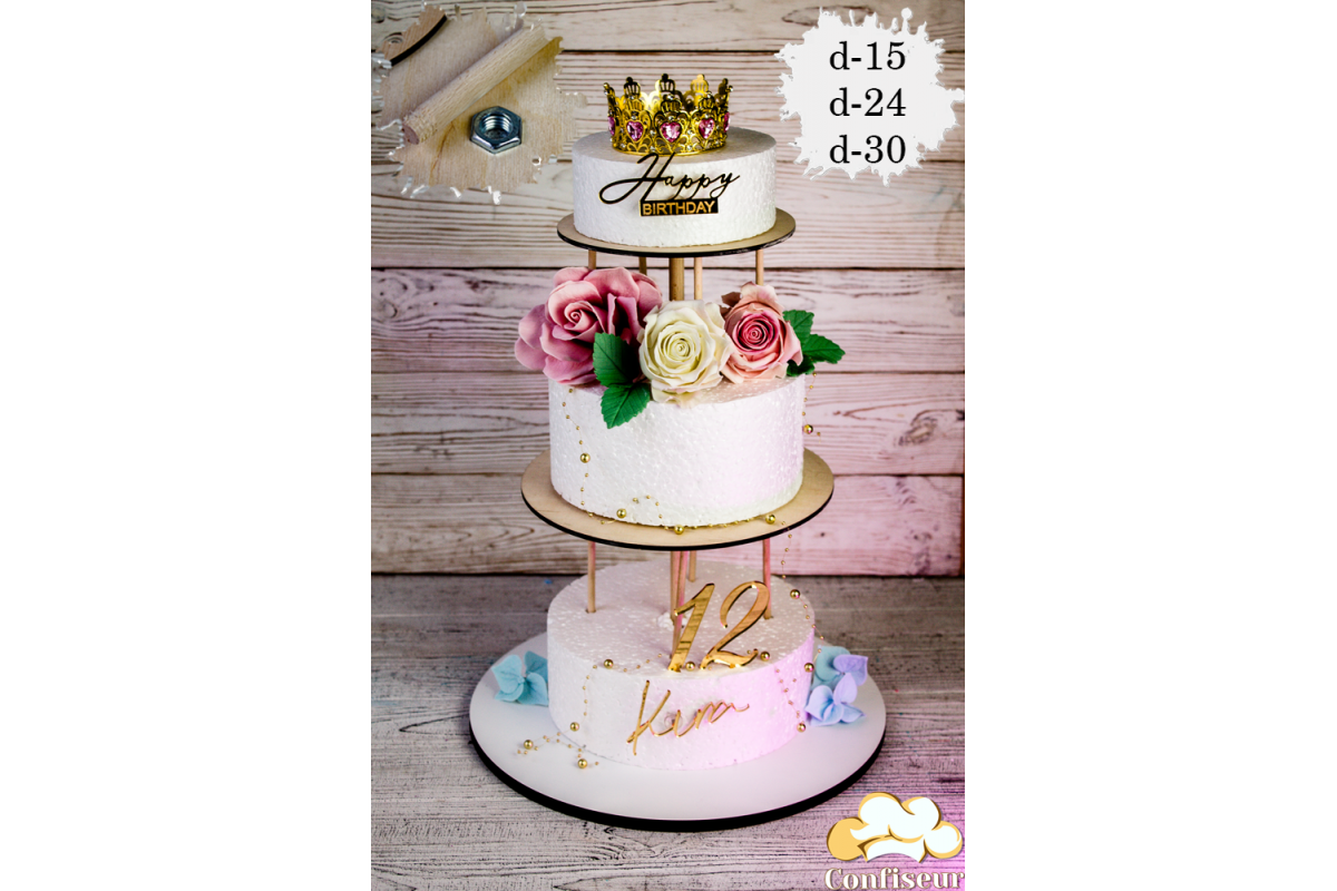Деревянная конструкция фанера + ДВП для многоярусных тортов с дюбелями (3 яруса).