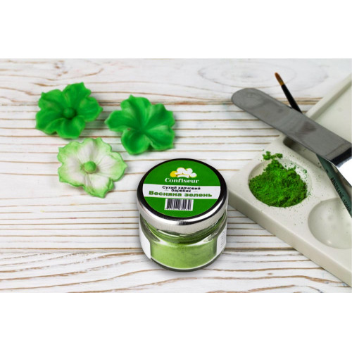Застосування сухого барвника для напилення цукрових квітів та пряників може виглядати наступним чином: