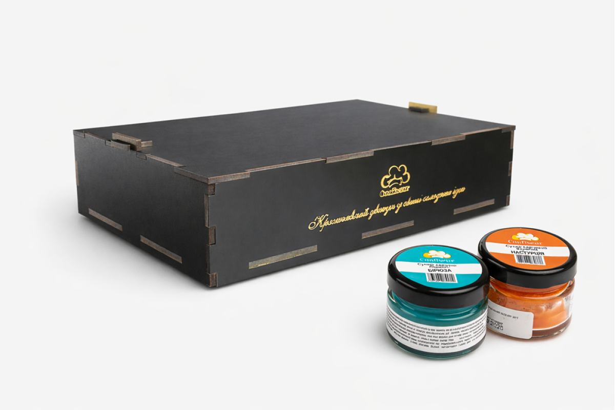 Розрахована на 15 баночок барвників Confiseur формату, представленого на фото.