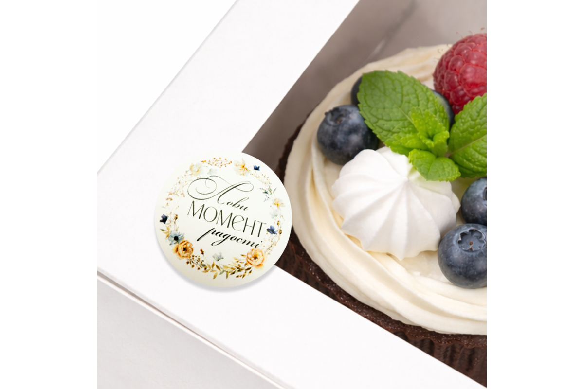 Прикрасьте коробочку з капкейками, пакетик з пряниками або бокс з макаронсами такий наклеечкой і Ваш твір буде виглядати ще більш виграшно і респектабельно.