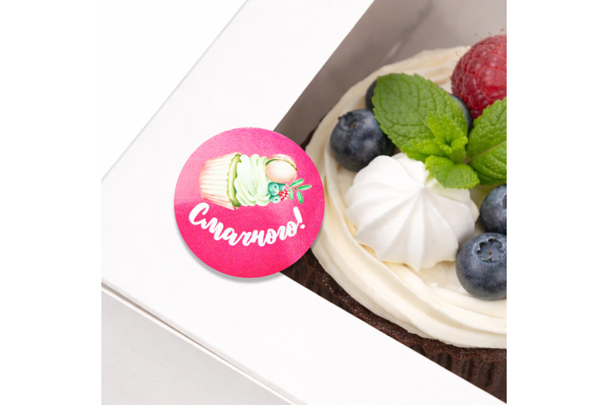 Прикрасьте коробочку з капкейками, пакетик з пряниками або бокс з макаронсами такий наклеечкой і Ваш твір буде виглядати ще більш виграшно і респектабельно.