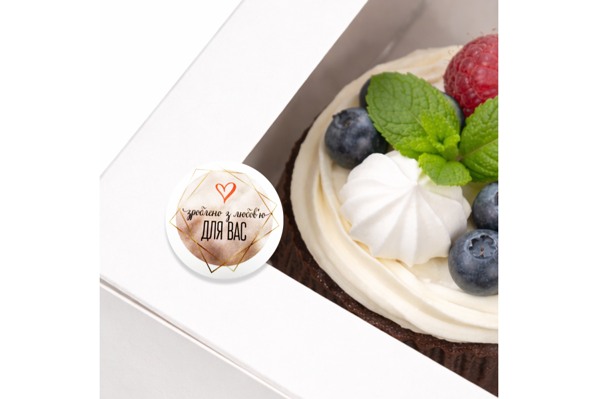 Прикрасьте коробочку з капкейками, пакетик з пряниками або бокс з макаронсами такий наклеечкой і Ваш твір буде виглядати ще більш виграшно і респектабельно.