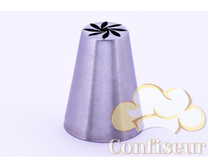 Насадка из пищевой нержавеющей стали, не имеет бокового шва. Размеры: высота – 4 см, диаметр основания – 3 см, диаметр выходного отверстия – 1,7 см. Насадка типа тюльпан «малазийский цветок» предназначена для формирования целых цветочков небольшого размера из крема (с тычинками и множественными лепестками). Наилучший результат достигается при работе с белковыми и масляными кремами. Позволит вам сэкономить время и украсить десерты неповторимыми цветами в малазийской технике.