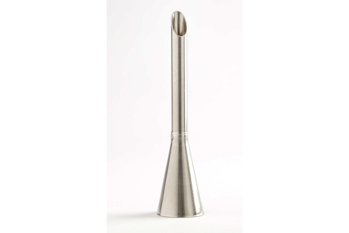 Seamless nozzle of stainless steel, dimensions: height - 7.5 cm, the outlet nozzle diameter - 0.5 cm, the base diameter - 1.7 cm nozzle designed for filling eclairs, profiteroles, muffins, donuts and other desserts. Small diameter outlet will make filling the place of desserts filling invisible and prevent it from flowing.