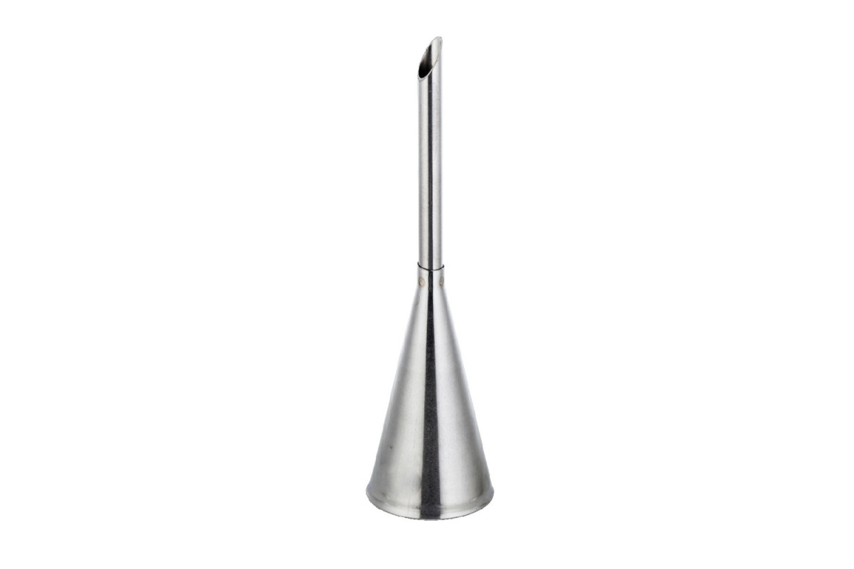 Seamless nozzle of stainless steel, dimensions: height - 7.7 cm, the outlet nozzle diameter - 0.7 cm, the base diameter - 1.2 cm nozzle designed for filling eclairs, profiteroles, muffins, donuts and other desserts. Small diameter outlet will make filling the place of desserts filling invisible and prevent it from flowing.