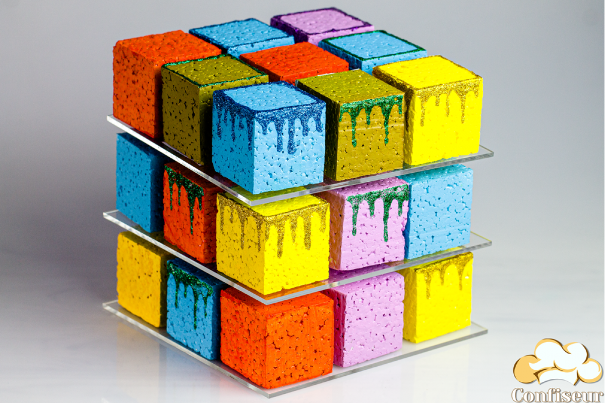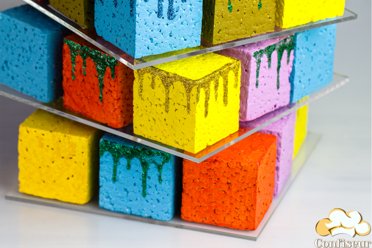 The rotating Rubik's Cube stand is used for serving cakes and desserts, square in shape.