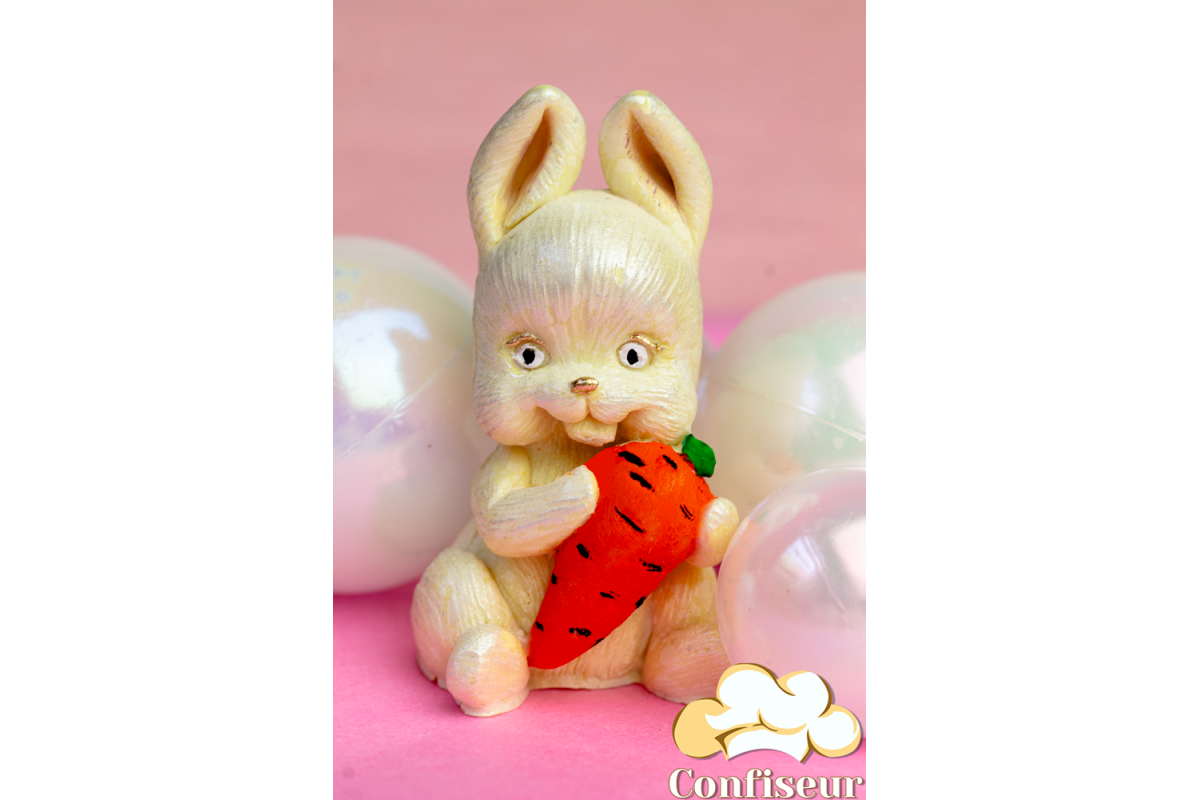 Шоколадна статуетка біла "Зая з помаранчевою морквиною"