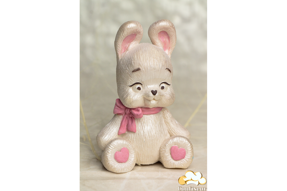 Шоколадна статуетка перламутрова "Зайченя" з рожевим бантиком