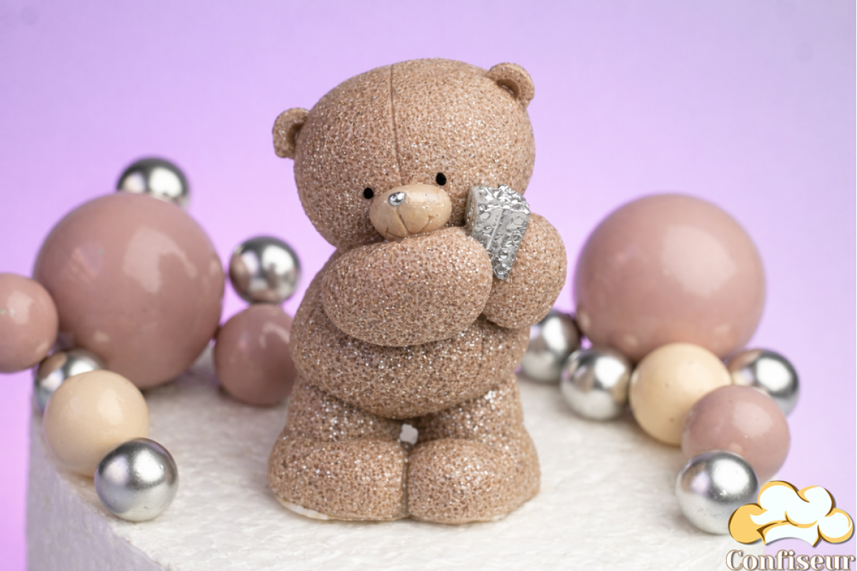 Шоколадна статуетка "Тоффі ведмедик зі срібним подарунком"
