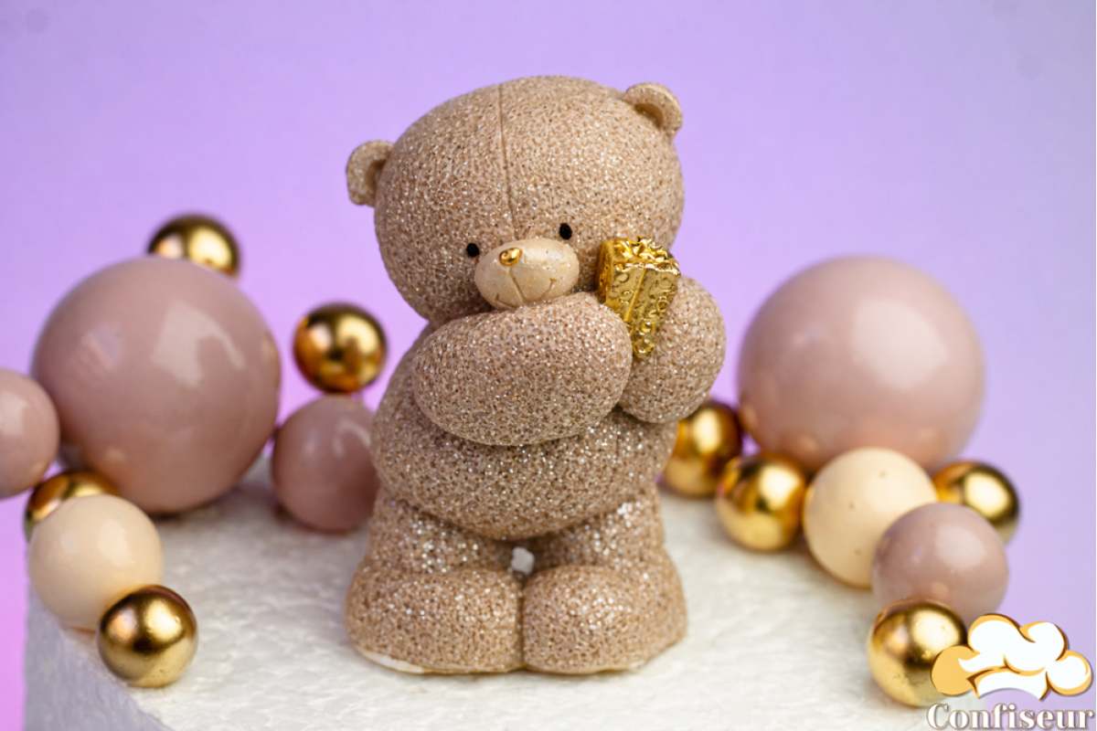 Шоколадна статуетка "Тоффі ведмедик з золотим подарунком"