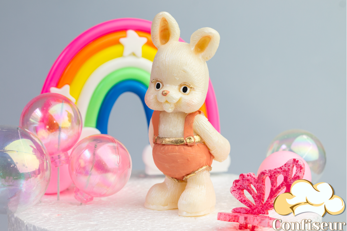 Шоколадна статуетка "Зайка білий у персиковому комбінезоні"