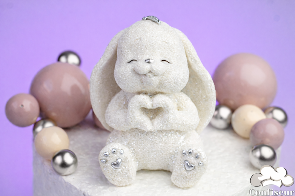 Шоколадна статуетка "Зайка Лайк" білий зі сріблом