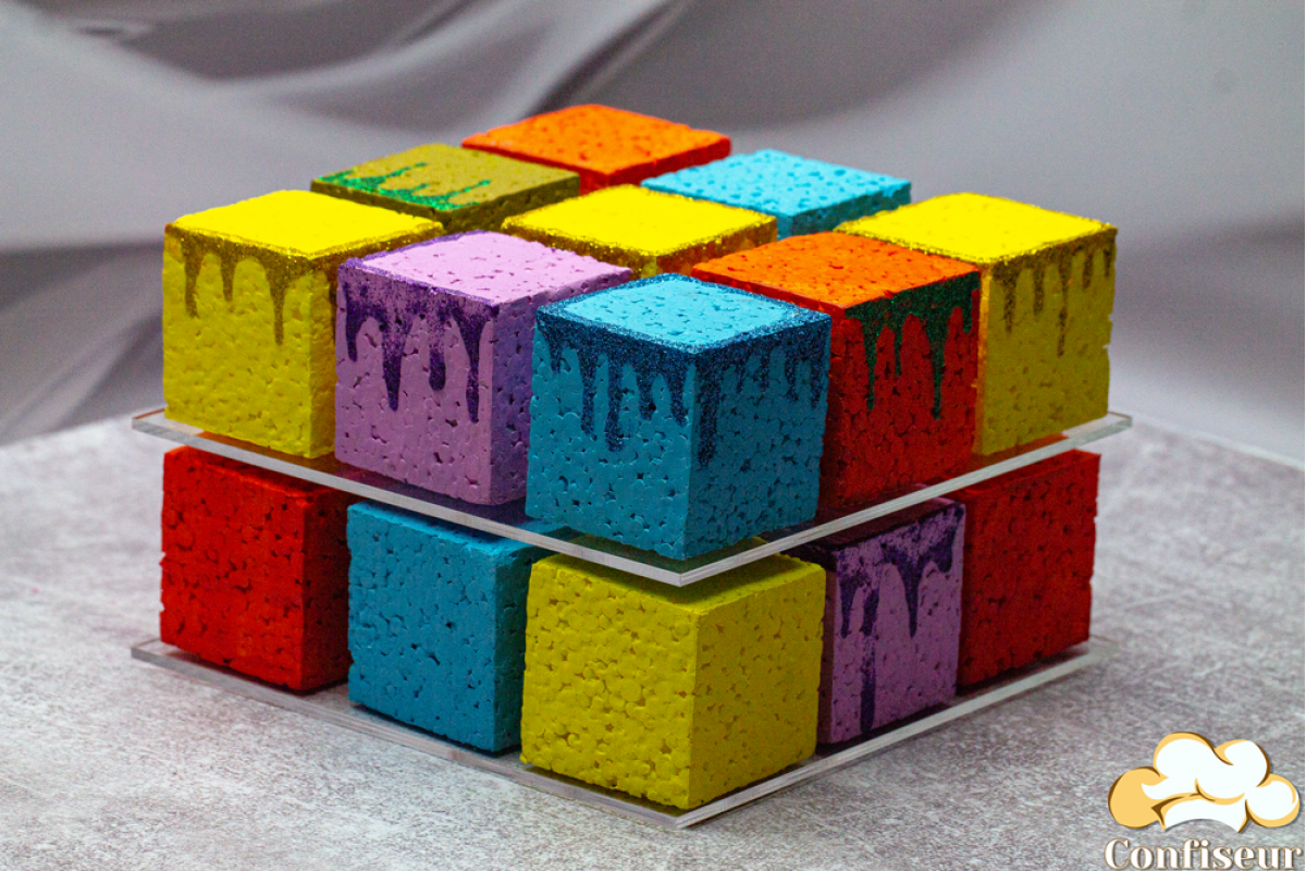 Стенд кубик-рубик, що обертається, застосовується для подачі тістечок і десертів, квадратної форми.
