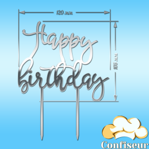 Топпер "Happy Birthday" №19 (срібний акрил)