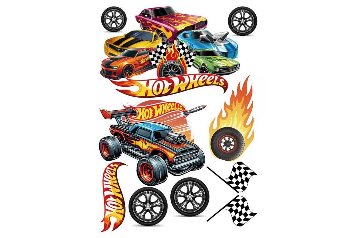 Вафельна картинка на торт Hot Wheels. Картинки друкуються на папері стандартної товщини 0,7 мм і виключно харчовими чорнилами.