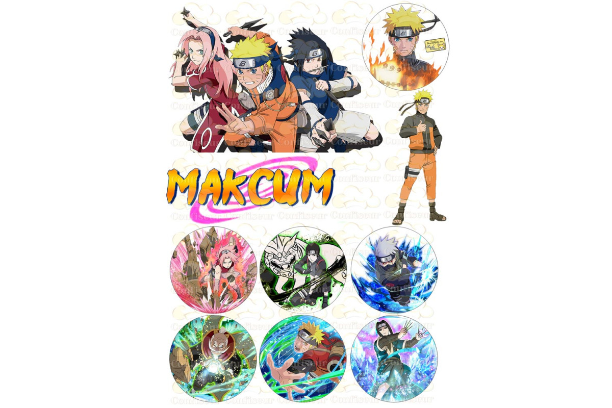 Вафельна картинка на торт героями Naruto. Їстівні картинки друкуються на вафельної папері з рисового крохмалю, стандартної товщини 0,7 мм і виключно харчовими чорнилами.