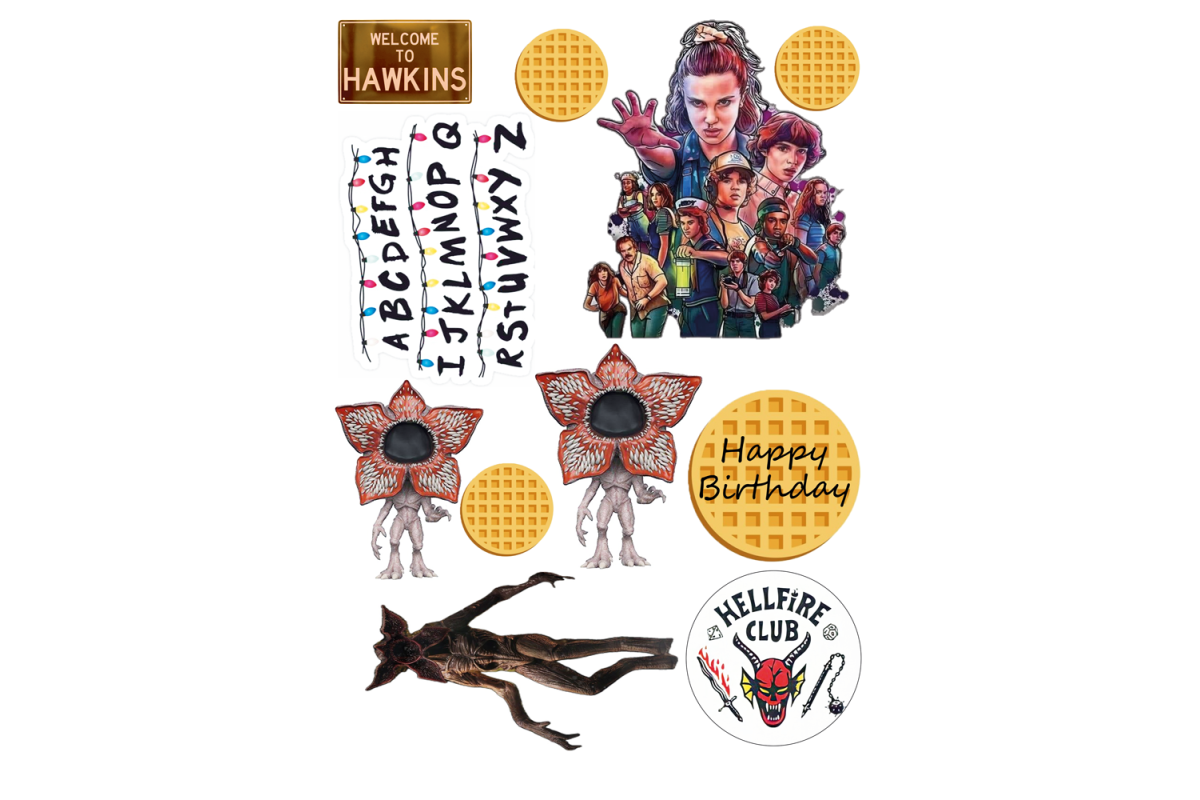 Вафельна картинка на торт Stranger Things. Картинки друкуються на папері стандартної товщини 0,7 мм і виключно харчовими чорнилами.